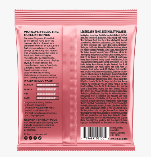 Zippy Slinkys are the lightest gauge combination offered by Ernie Ball. This combination is perfect for players looking for a snappy set of strings with extra zing that are easy to bend and provides the least amount of tension. Gauges .007, .009, .013, .020w, .026, .036,