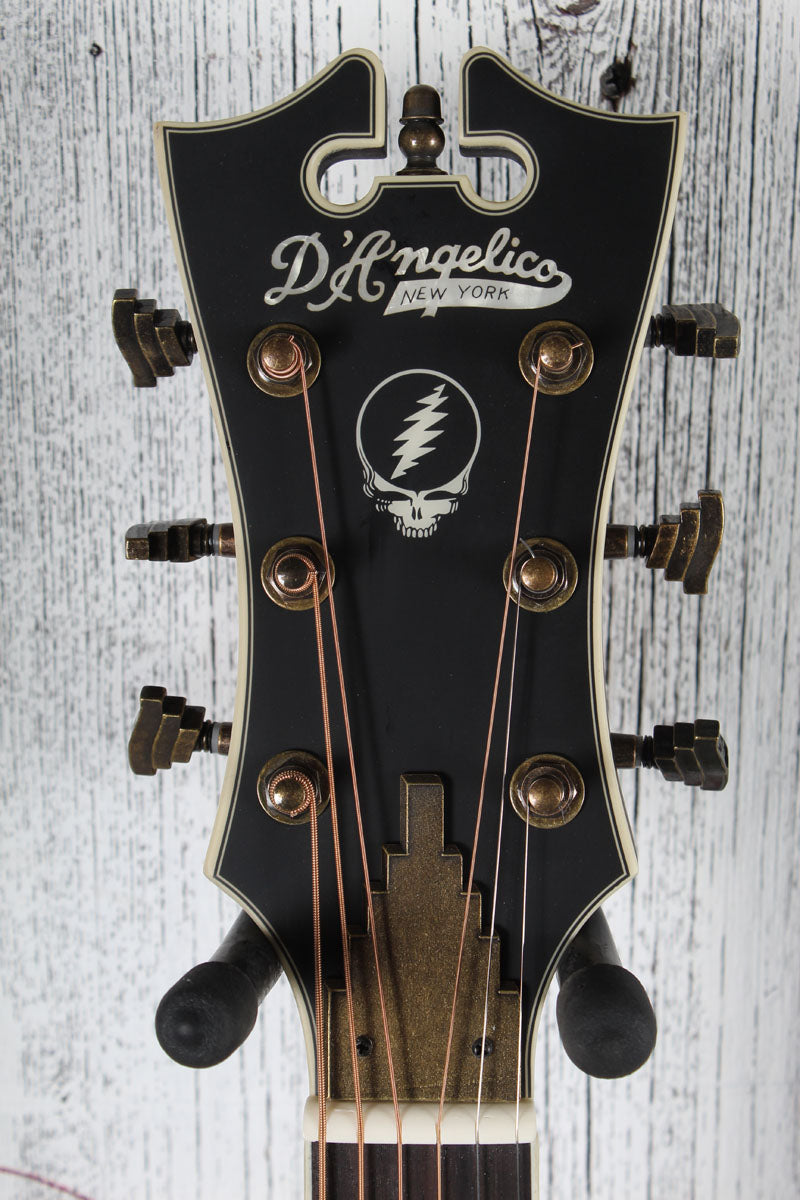Comes in the custom red, white and blue D'Angelico x Grateful Dead gig bag pictured.