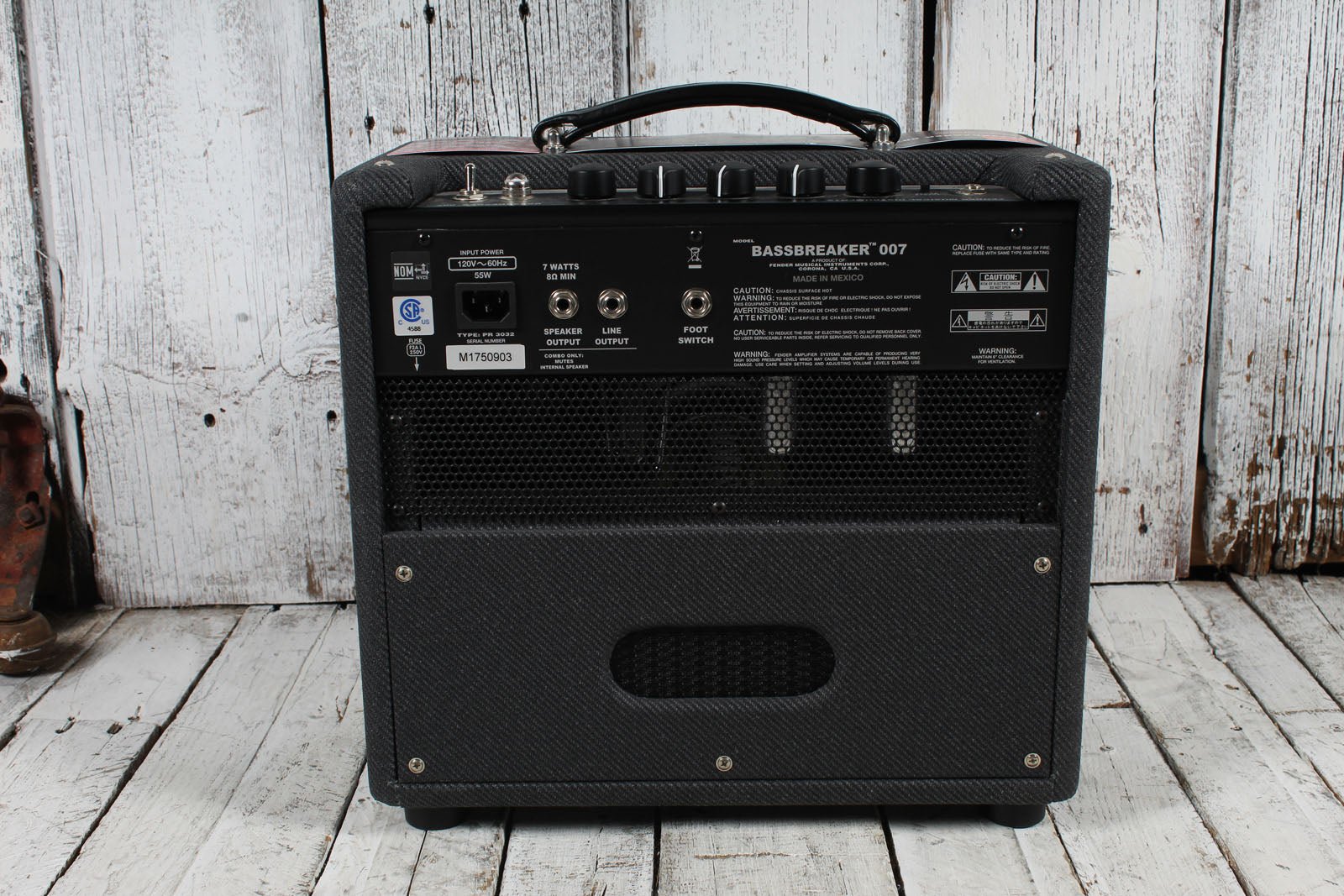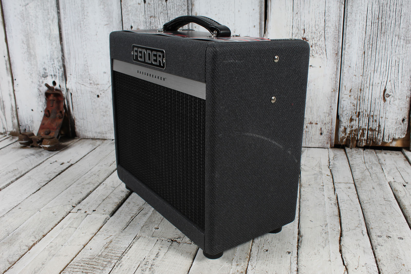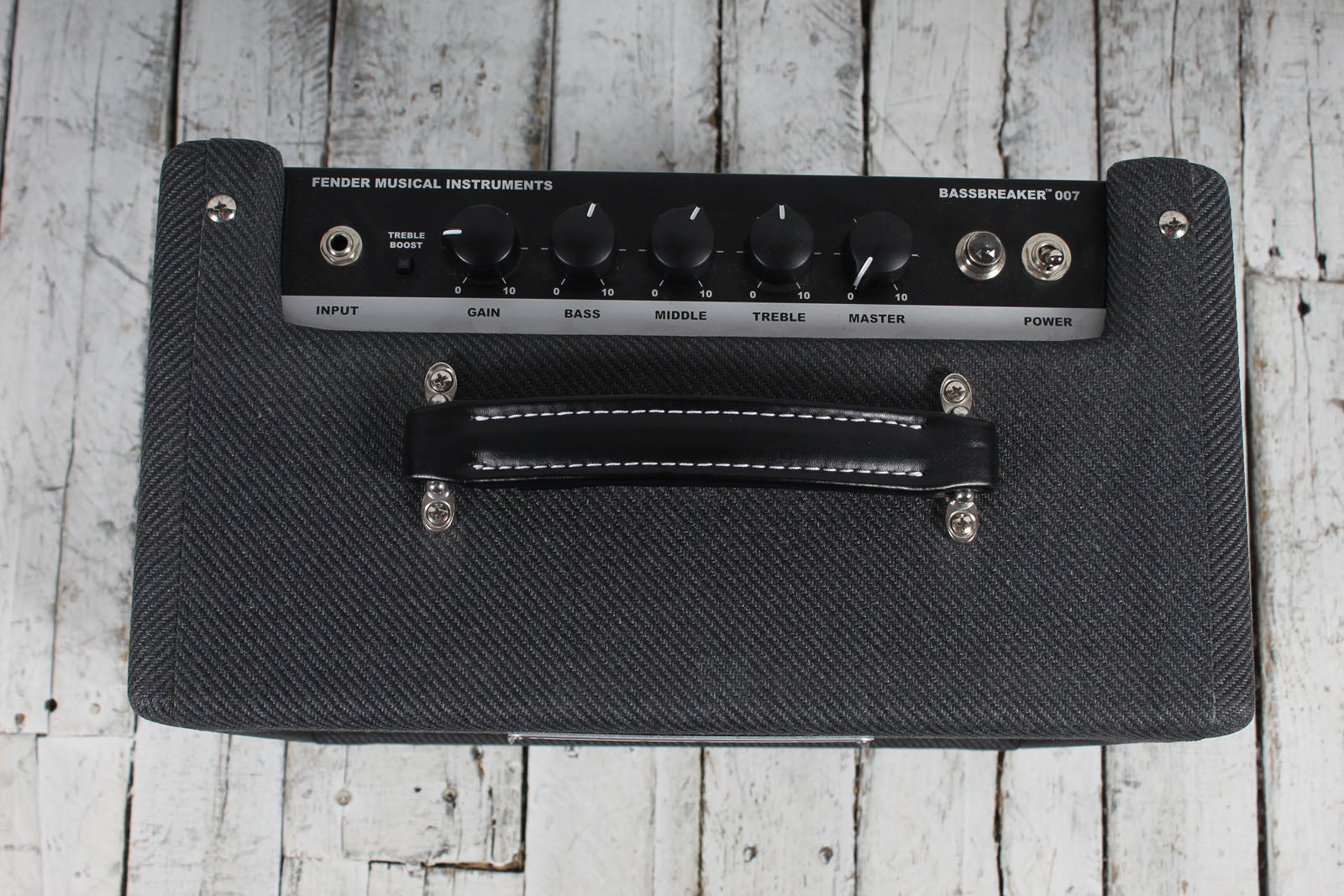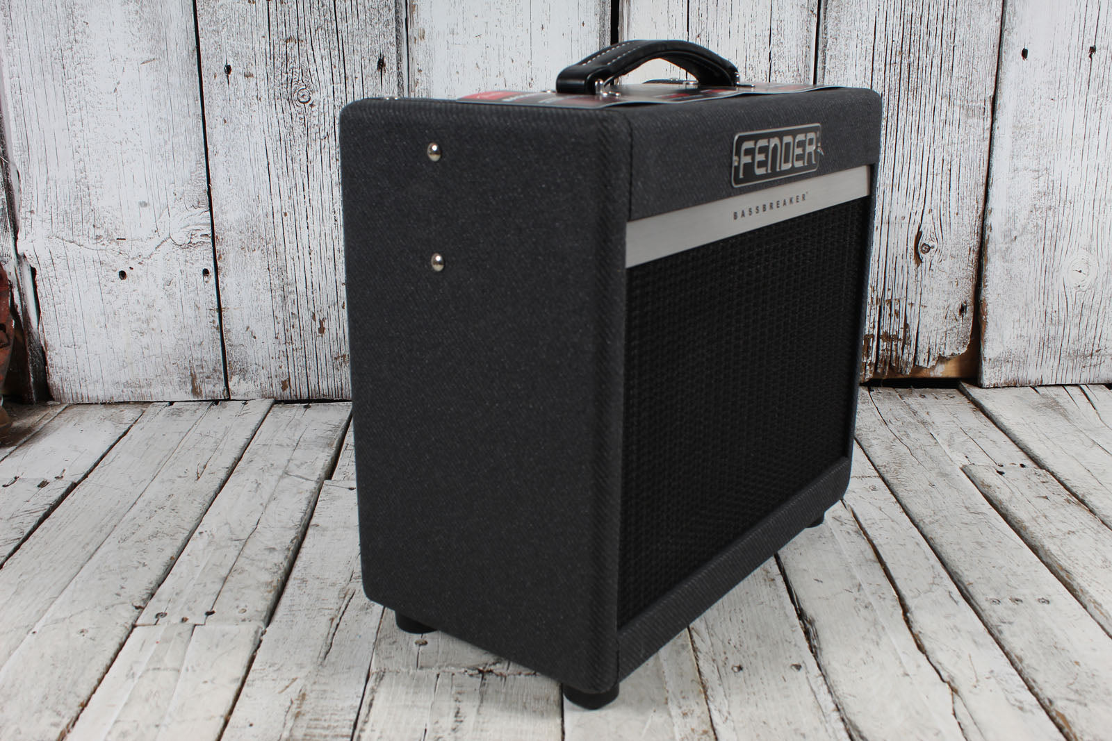 Powerful and unpretentious, the Bassbreaker 007 packs quite a punch for its size. Fueled by a pair of 12AX7 preamp tubes and a single EL84 power tube for 7 watts of true Class-A amplification, the Bassbreaker 007 features traditional gain and tone controls, and an interesting option - switchable vintage-style treble booster for increased overdrive and added harmonics. Higher gain settings of the 007 are just plain fun, but never mask the dynamics and identity of the guitar. The onboard ¼" line output connects directly to recording gear or a larger amp. Bold visual touches include block Fender logo, dark grey lacquered tweed covering, leatherette handle and big, bold pointer knobs.