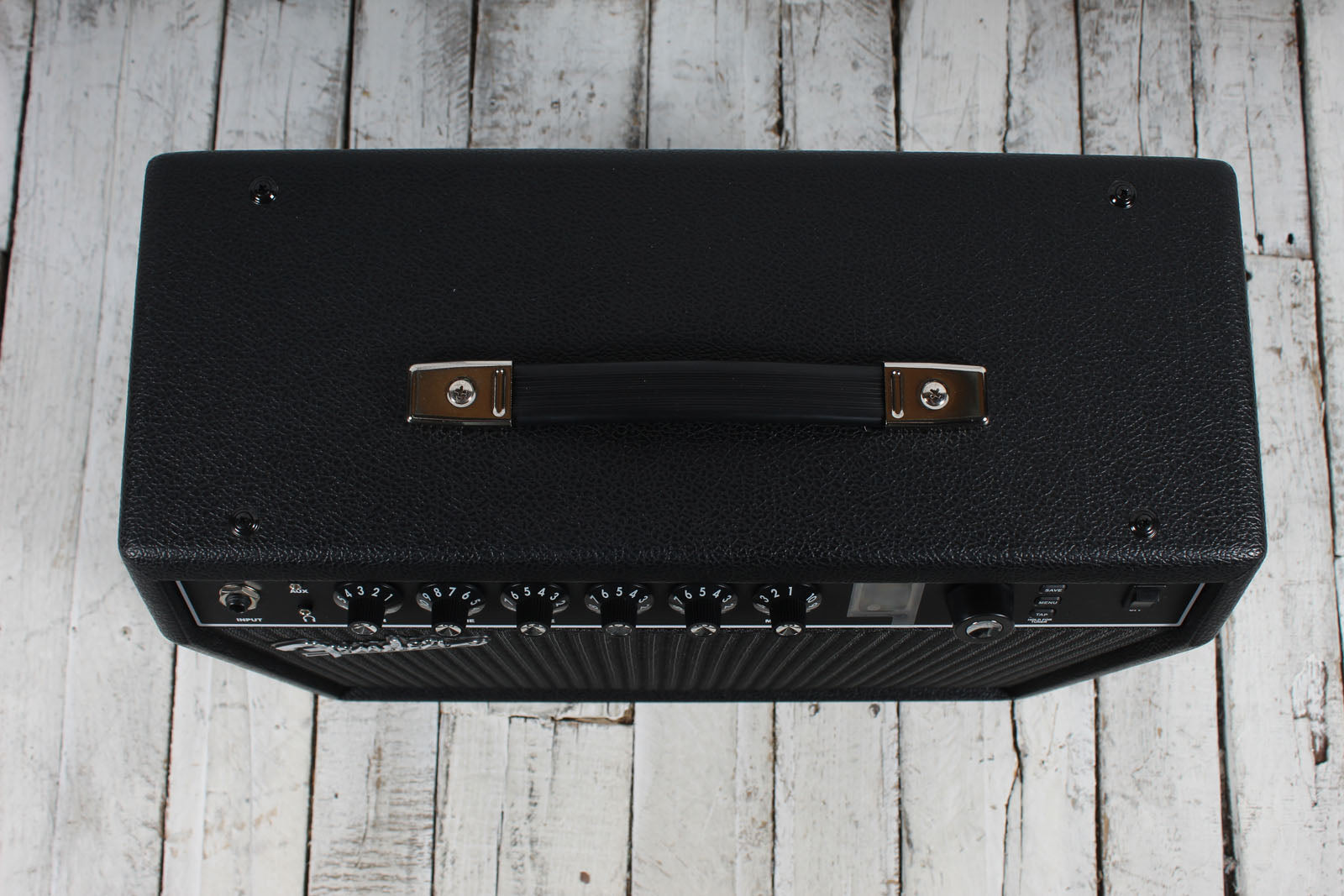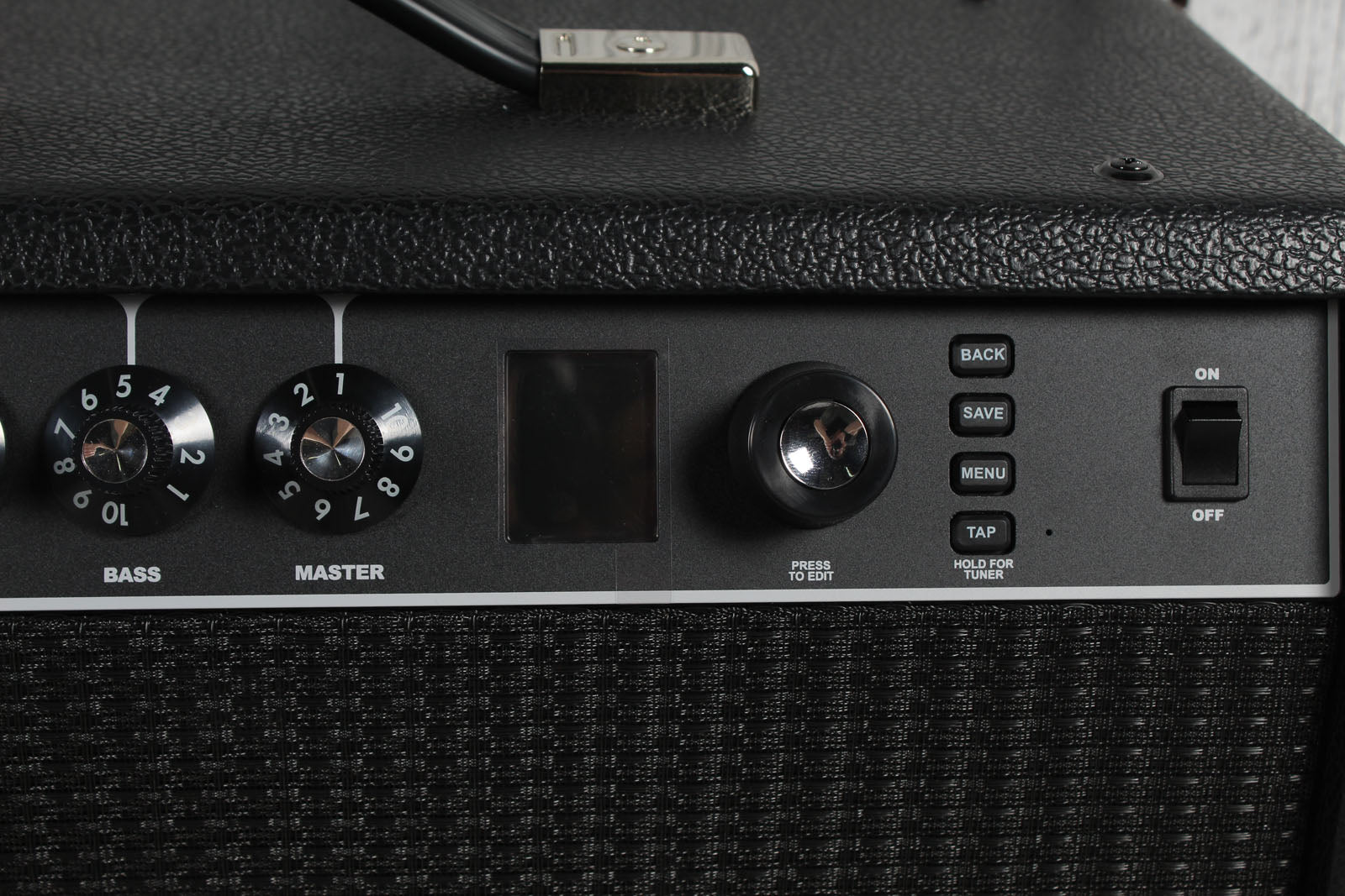 - Control Panel: Gain, Volume, Treble, Bass, Master, Preset Select, Back Button, Save Button, Menu Button, Tap Tempo/Tuner Button
