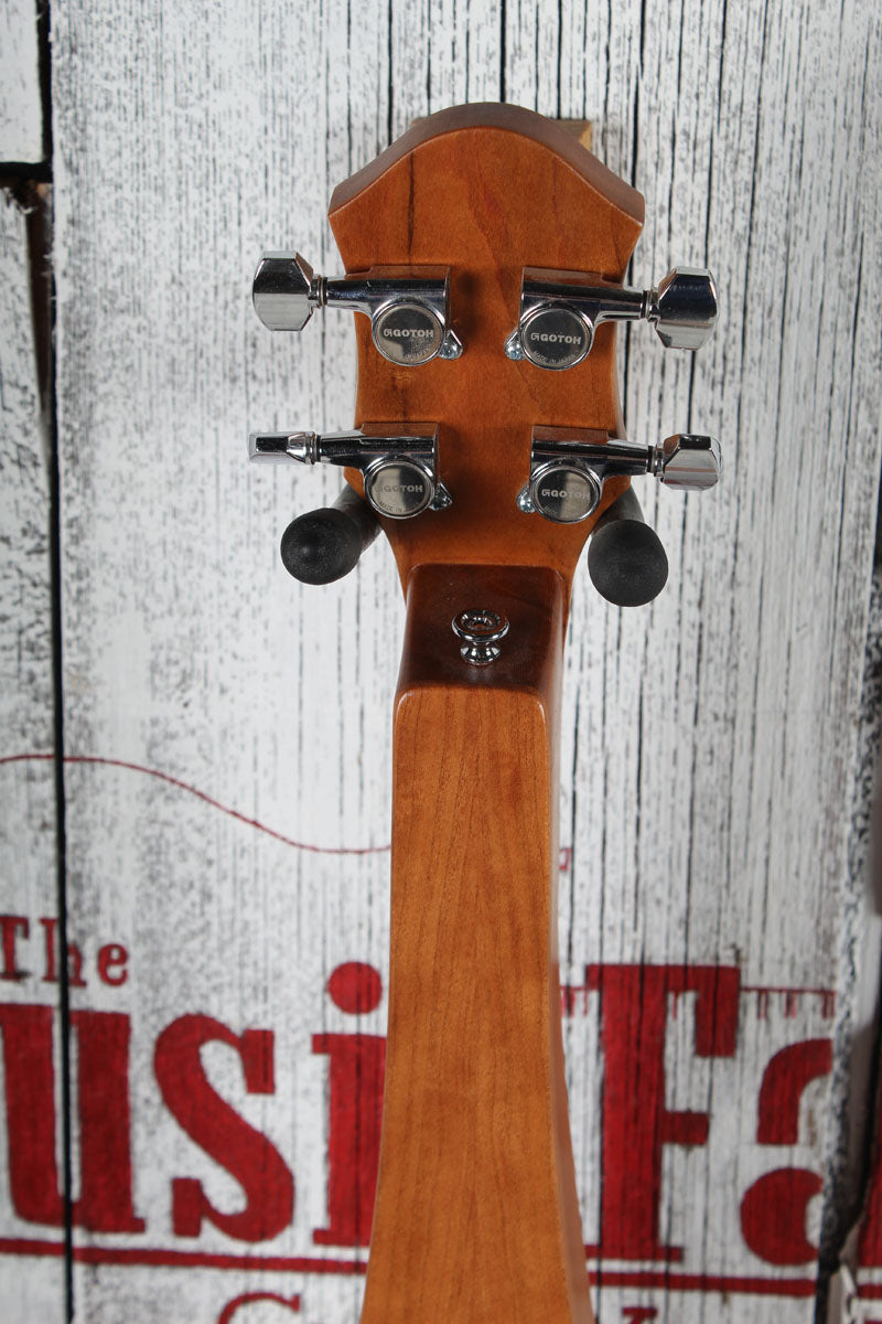 Includes Lifetime Warranty, strap buttons to match peghead, padded Navy nylon case, beginner book, pick, noter and leather tie.
