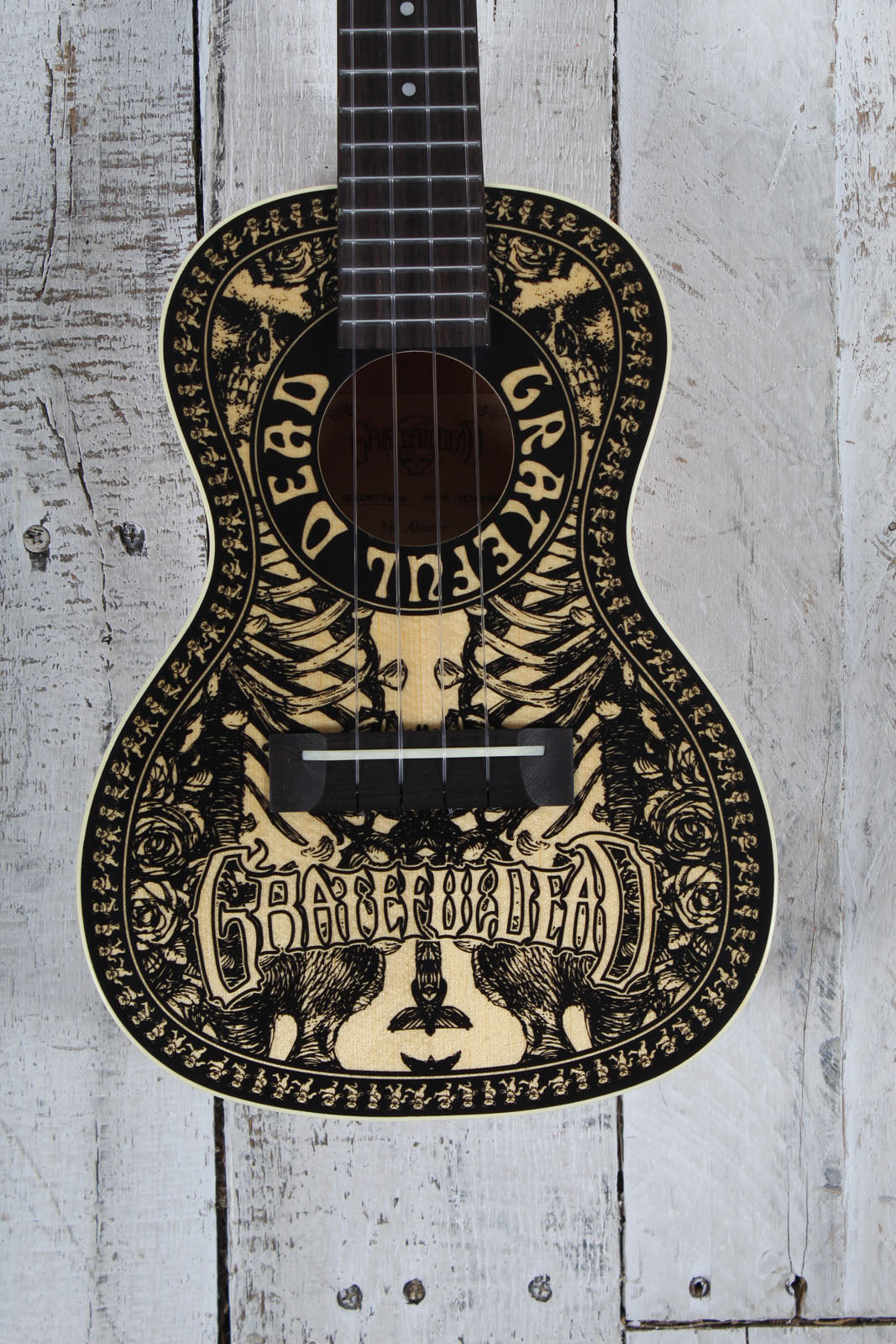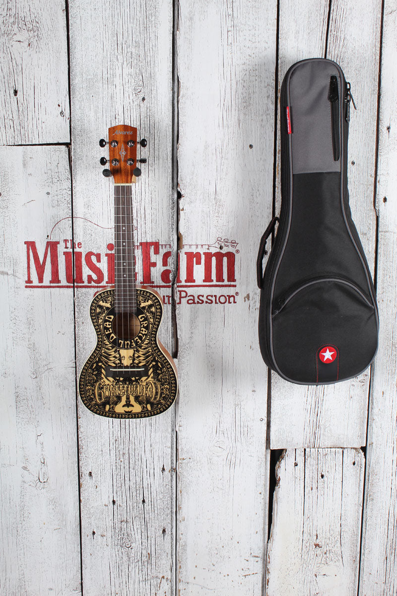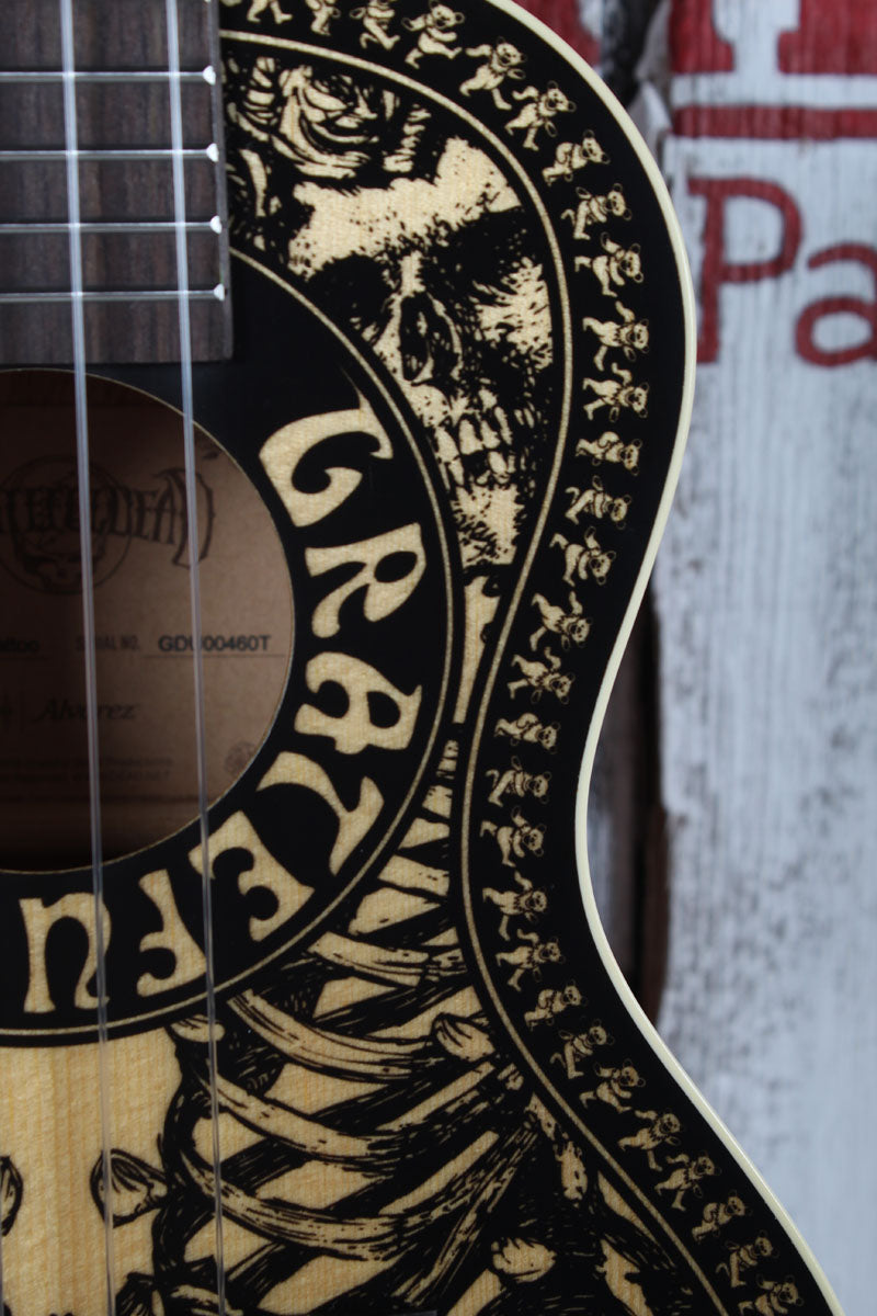 Celebrate the legacy of the "Dead" with the Alvarez GDU26C Limited Edition Tattoo ukulele. Part of the officially licensed Grateful Dead series, this concert ukulele features the iconic Tattoo artwork - a striking blend of traditional tattoo aesthetics and classic band imagery, including the legendary Steal Your Face skull.